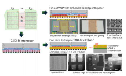图2 芯片模块可以顺利获得硅中间层进行集成。Imec也在研究诸如硅桥或有机RDL等替代方案。