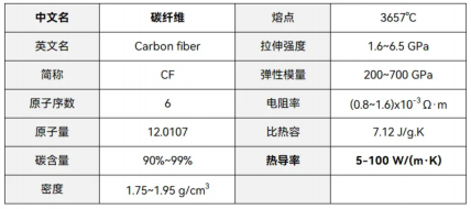 碳纤维是具有sp2键的石墨沿着平行于基面轴向生长而得到的一种长径比很大的微晶石墨材料,其中碳含量高于99%的CF称石墨纤维。CF力学性能优异,密度不到钢的1/4,轴向强度和模量高,无蠕变,耐疲劳性好,杨氏模量是玻璃纤维的3倍多。CF密度低,X射线透过性好,耐冲击性较差,容易损伤,在有机溶剂、酸、碱中不溶不胀,耐蚀性出类拔萃。