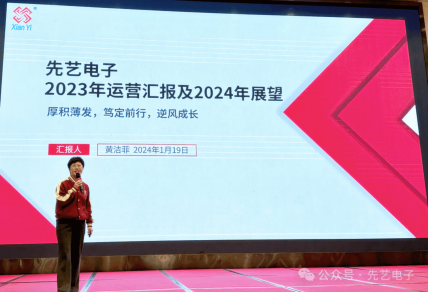 执行总裁黄洁菲对2023年运营情况进行汇报,并从业绩、人才引进、销售、研发、生产进行布局规划。
