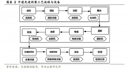 1.1 先进封装属于中道工艺,涉及部分前道工艺与设备