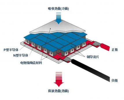 现在,普遍商业化的半导体制冷片以碲化铋基为主(碲化铋为基材,做不同的掺杂形成P级和N级),帕尔帖效应更明显,相应的制冷效率更高。