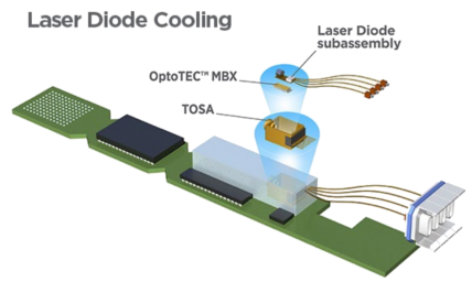 散热需求变成刚需:随着光模块速率和集成度不断提高,微小面积内的功耗急剧上升,局部热流密度大幅增加,对光模块的散热提出更高要求。以直调光模块为例,400G 光模块的高速信号速率是100G 光模块的 2倍,功耗约 3倍,对散热提出了更高的要求。TEC 技术可顺利获得电流精准实现优于 0.01℃的温控稳定性,这将成为未来的散热解决方案。