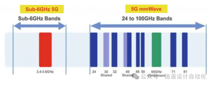 2、高频段(5G毫米波):24 GHz ≤ 频率 ≤ 100 GHz, 1 Gbps < 数据速率 ≤ 10 Gbps