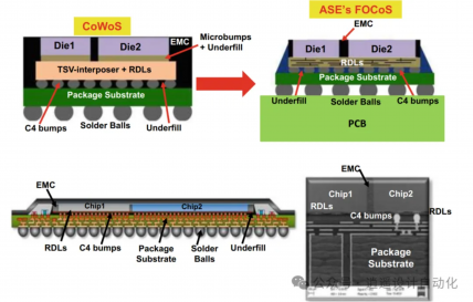 这种技术涉及将多个芯片嵌入环氧模塑料(EMC)中,然后扇出重分布层(RDL)以连接到焊球。这种方法允许更高的集成密度和改进的电气性能。