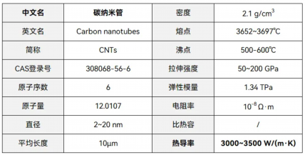 一维碳纳米管的热导率可达 3000~3500 W/(m·K)。CNTs沿着长度方向热交换性能很高,相对其垂直方向的热交换性能较低,顺利获得合适取向,CNTs可以合成各向异性热传导材料。在复合材料中掺少量取向结构的CNTs,热导率明显改善。