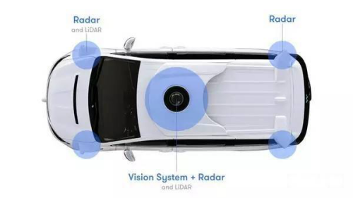 下图展现的是谷歌无人驾驶公司Waymo在汽车上使用的激光雷达的布局: